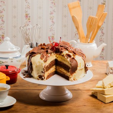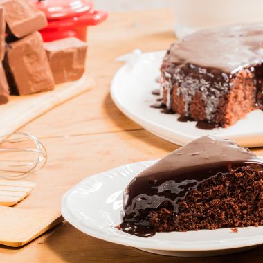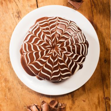 Macio chiffon de chocolate com cobertura de chocolate com leite condensado Nestlé® * Produto Tabela Delivery